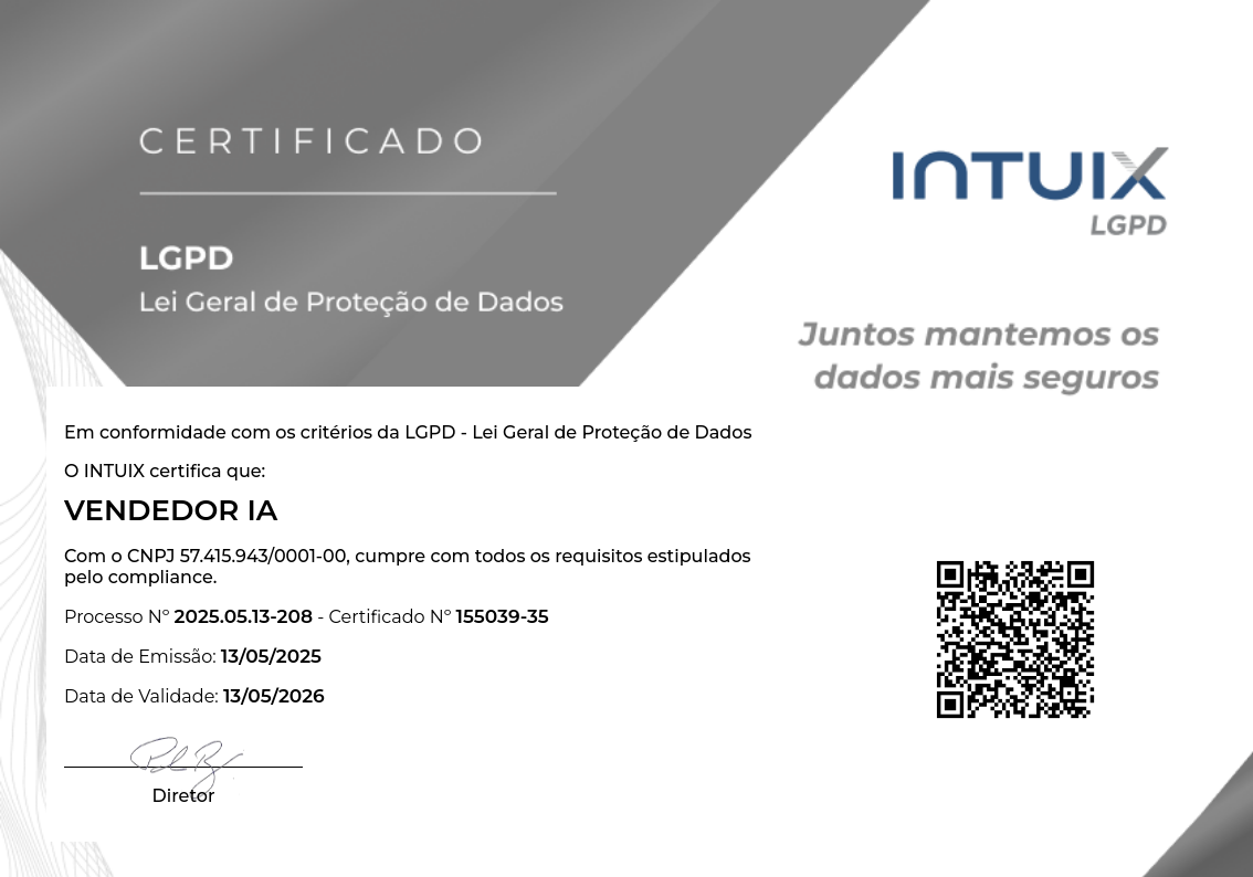 Os serviços do Vendedor IA são destinados ao uso comercial por empresas que desejam otimizar suas operações. Você deve usar os serviços de maneira responsável e de acordo com todas as leis e regulamentos aplicáveis no Brasil.